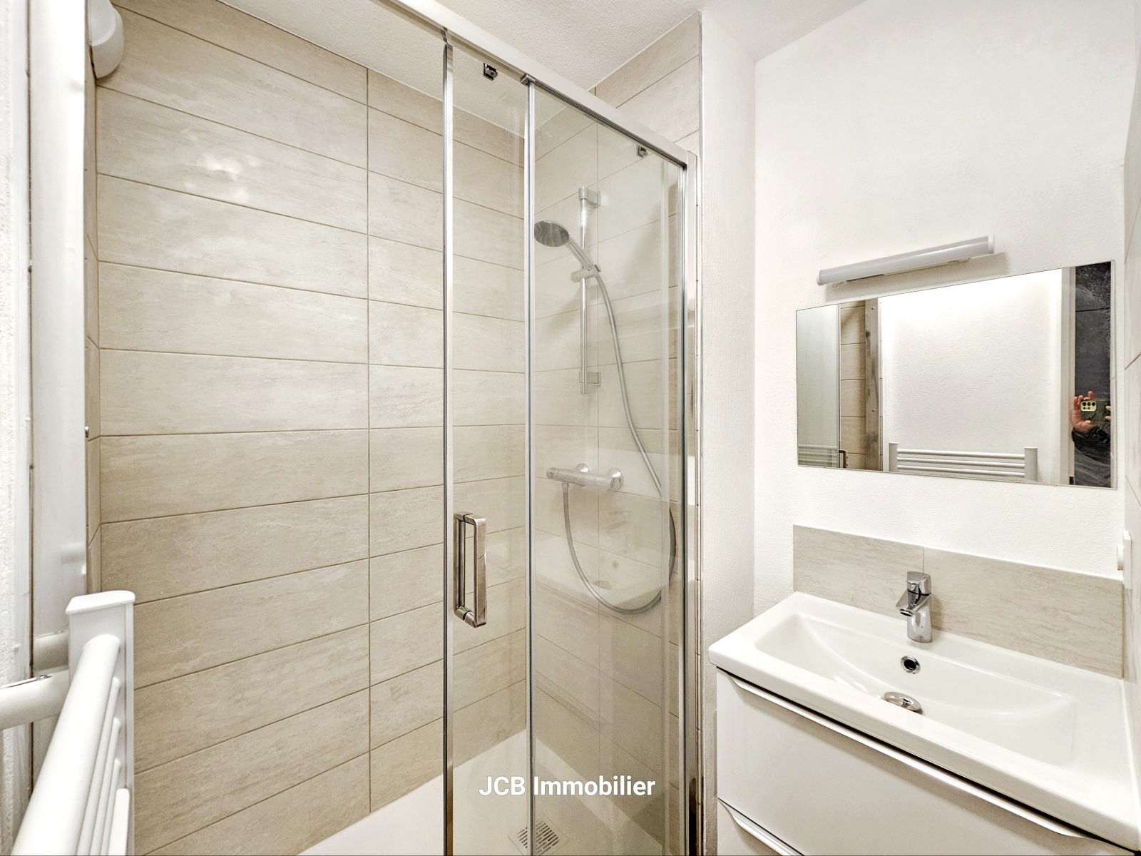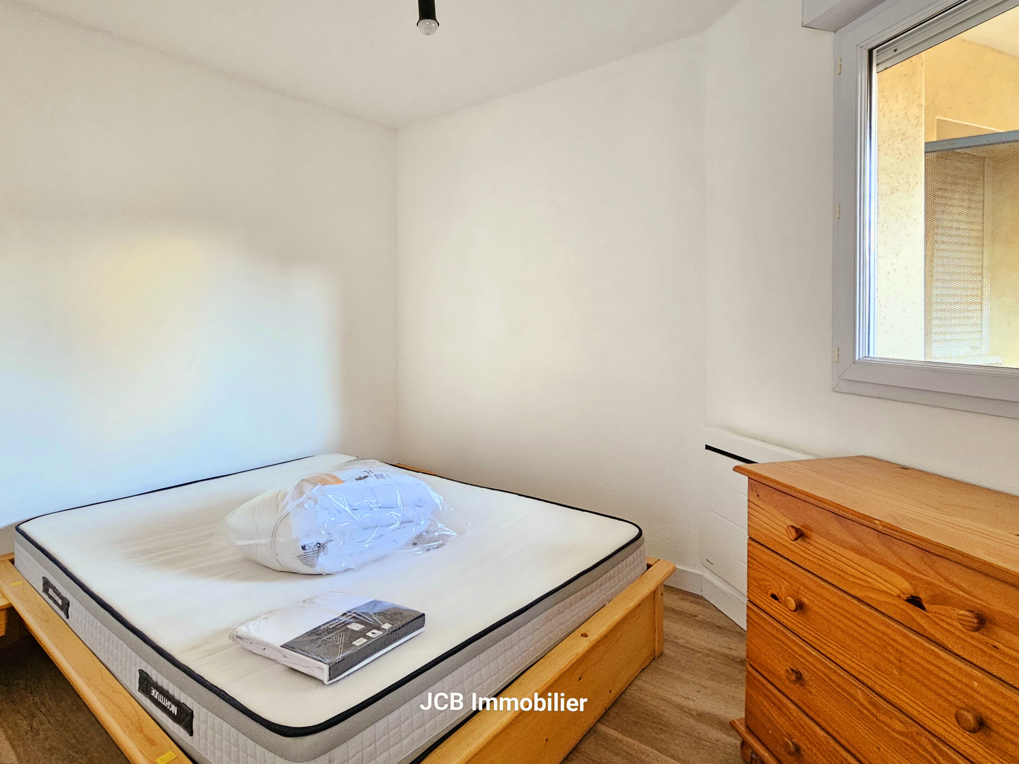 L'apartement se compose d'une entrée avec placard, un séjour, un espace cuisine aménagé et équipé (plaque de cuisson vitrocéramique, hotte, réfrigérateur et lave-linge), une chambre séparée avec placard, une salle d'eau avec grande douche et un WC séparé.