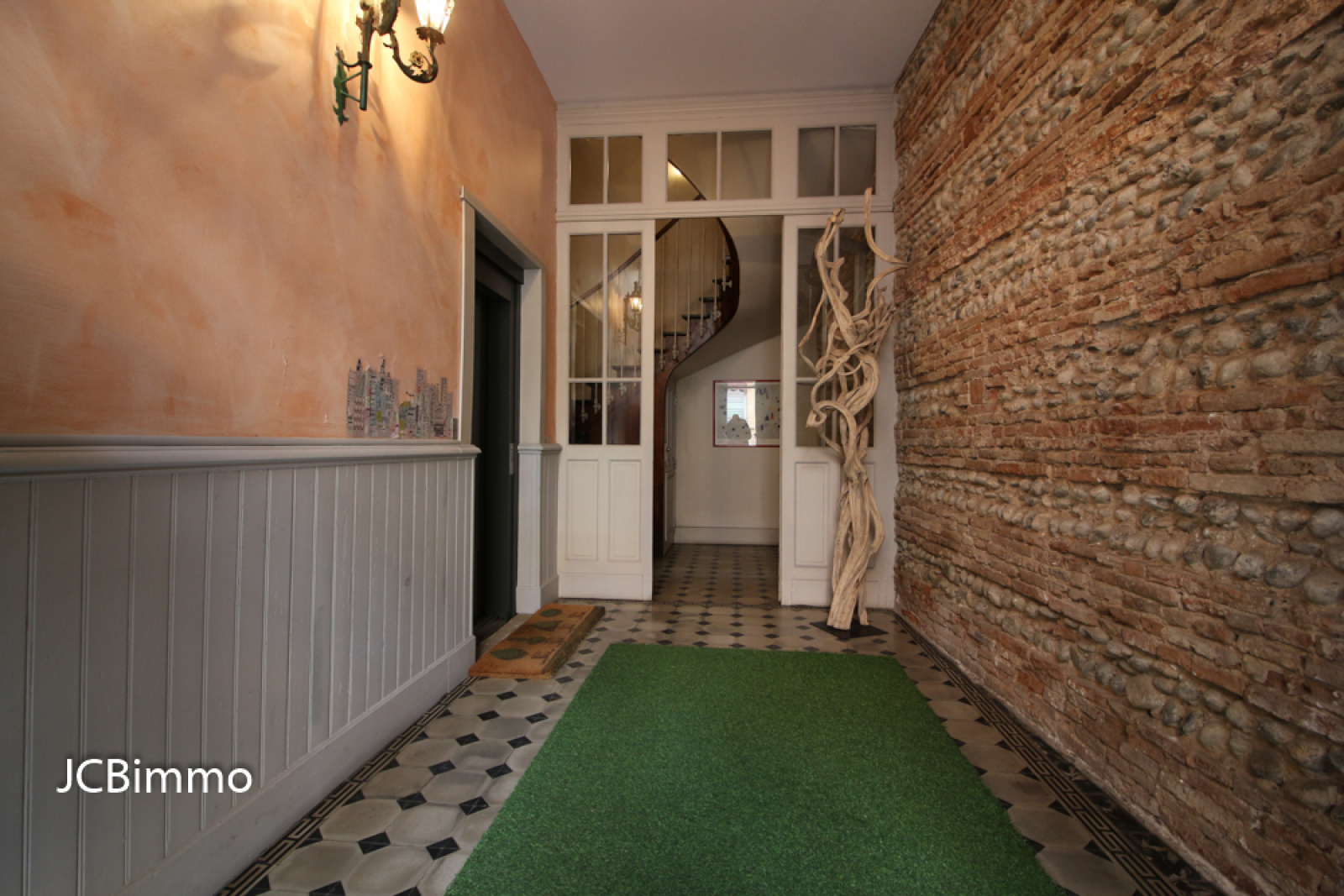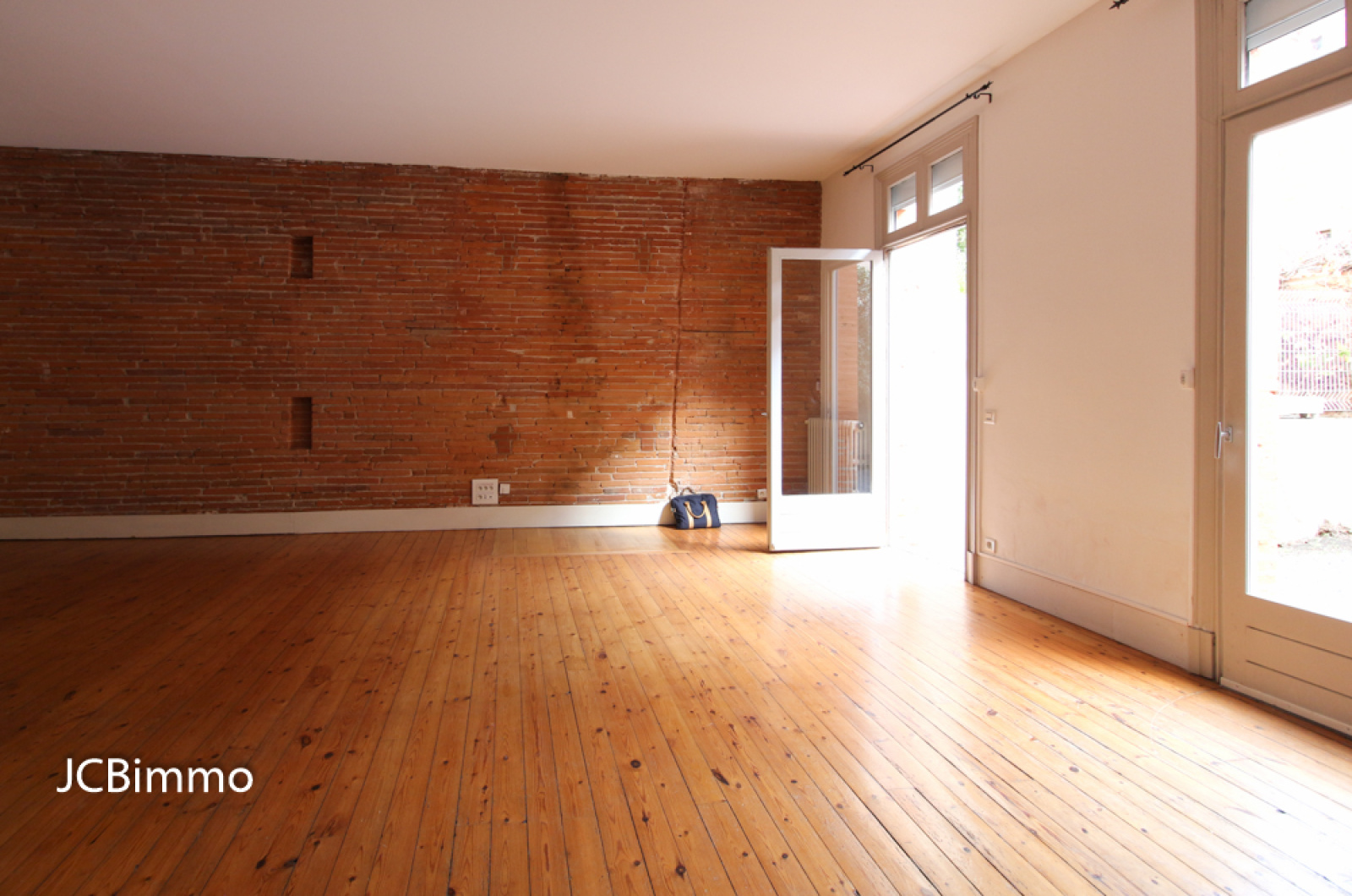 L'appartement se compose d'un espace entrée avec placard aménagé, un grand séjour avec beau parquet et briques apparentes, une cuisine séparée aménagée semi-équipée (meubles hauts et bas, table de repas, plaque de cuisson 4 feux gaz et four), une chambre avec placard aménagé, une salle d'eau avec douche à l'italienne, WC séparé avec lave mains et une terrasse accessible du séjour et de la cuisine.